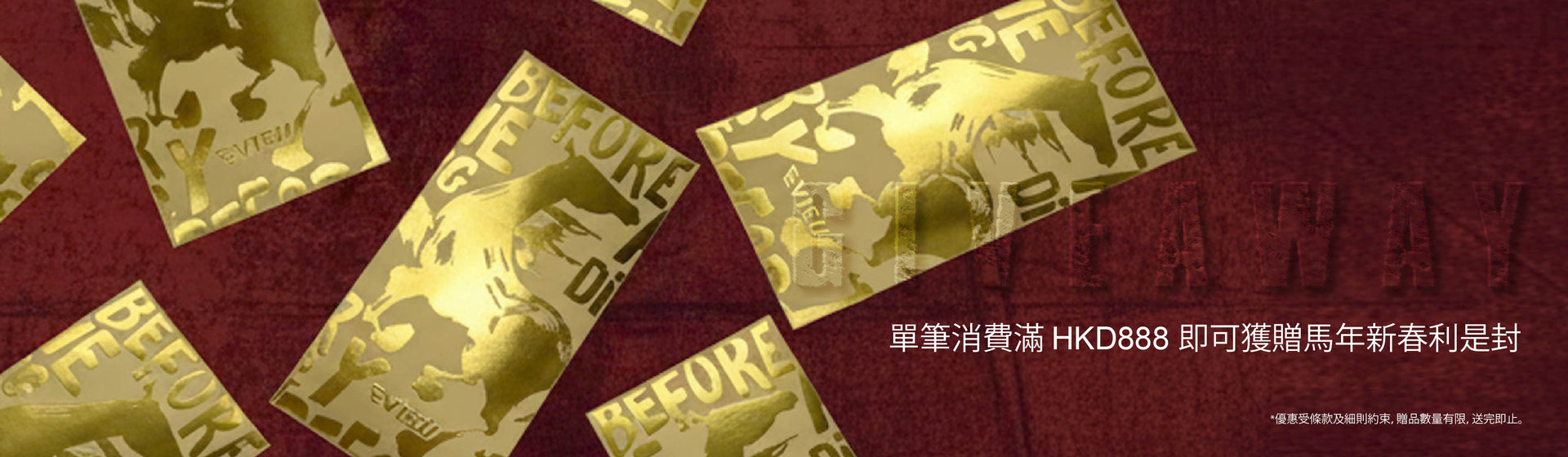 Receive a complimentary Year of the Horse Red Packets with a minimum net purchase of HK$888, while supplies last.*