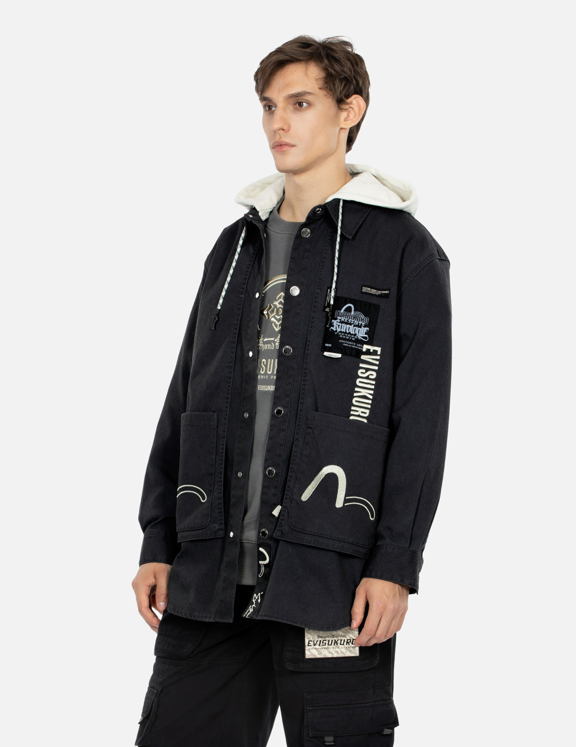 EVISUKURO這款夾克以寬鬆版型打造,可拆卸衣帽結合拼接式下擺,呈現仿兩件式設計,增添層次變化。衣身設計了品牌標誌性元素刺繡,精緻立體,奪人眼球,讓你的新季造型輕鬆成為街頭焦點。